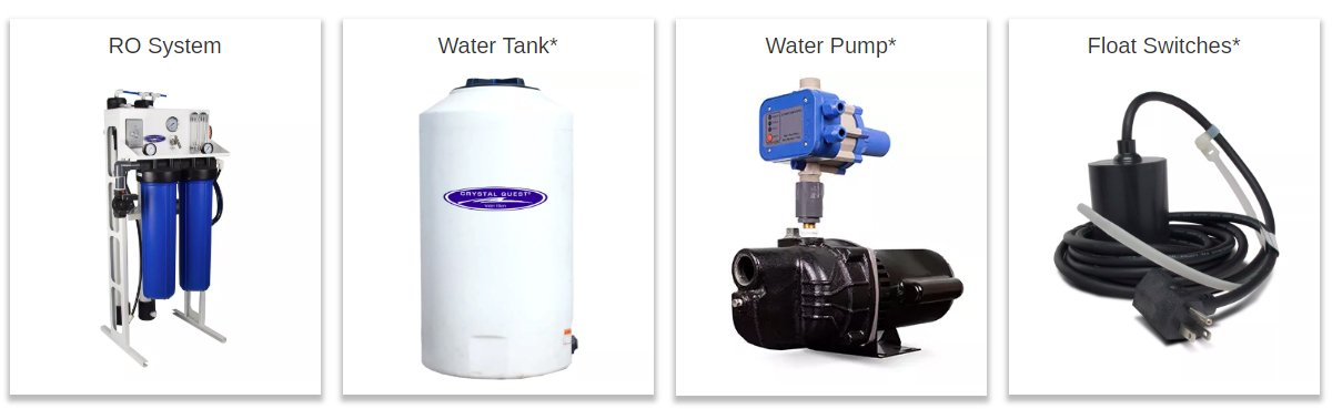 - Water Tank - (165, 220, or 550 gallons storage tank) , this system of 200 gpd will come with 20 gallon tank if Storage Tank Kit is ordered.